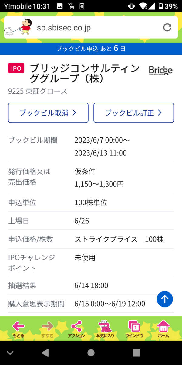 2023-06-09 配当金とIPO SBI証券に配当金が振り込まれていました。 三菱HCキャピタルの配当金、1800円です。 NISAなので、税金も引かれることがなかったですね😀 同じくSBI証券にてIPOに挑戦です。 まずはブリッジコンサルティンググループ。 SBI証券が主幹事の銘柄なので、期待したいです。 13万ほど入金して、申込み完了です。 そして、アイデミー。 こちらもSBI証券が主幹事の銘柄なので、期待したいです。 11万ほど入金して、申込み完了です。